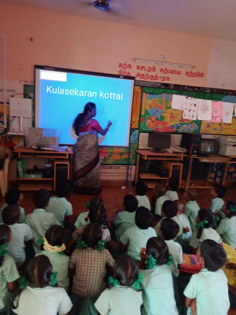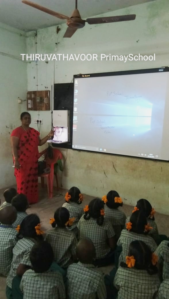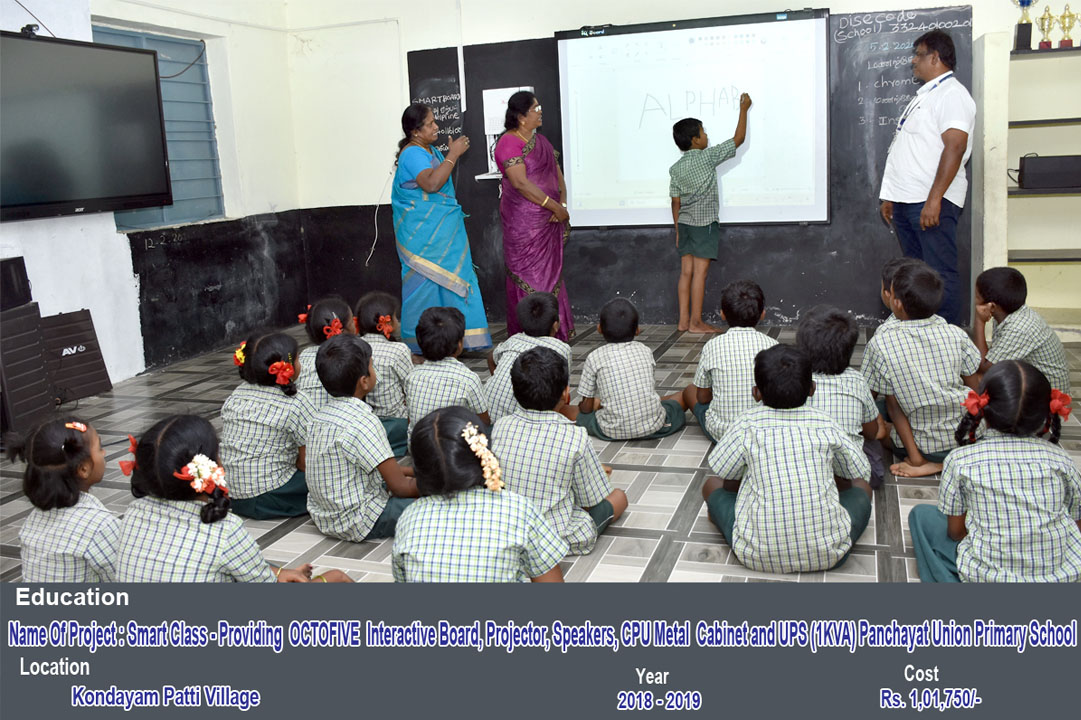 Smart Class - Panchayat Union Primary School- Kenjampatti Providing OCTOFIVE Interactive Board, Projector, Speakers, CPU Metal Cabinet and UPS(1KVA) |